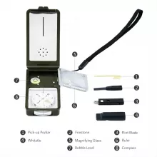 10-in-1 Survival Compass with LED, Whistle, Igniter & Thermometer
