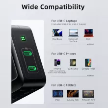 - Dual USB-C Ports: Featuring dual USB-C ports, this charger allows you to charge two devices at once. Whether it’s your laptop, tablet, or smartphone, you can quickly power up multiple devices without slowing down.