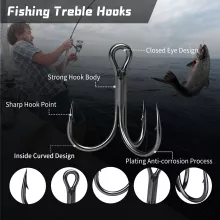 These aren’t your average treble hooks. Designed for anglers who demand performance, each hook features three razor-sharp barbed points that are expertly curved to ensure fast penetration and a secure hold. Whether you’re targeting bass in a lake, trout in a stream, or bigger predators out at sea, these hooks will help you land your catch more efficiently.