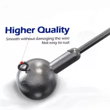 Crafted from high carbon steel, these jig heads deliver superior strength and corrosion resistance. You won’t have to worry about rust, even after repeated exposure to ocean spray. Each hook is equipped with a 2X sharp barb that penetrates fast and holds firm, increasing your hookup ratio and reducing the chance of fish escaping. The round ball head offers excellent weight distribution, allowing for smooth casting and precise drop shot techniques.
