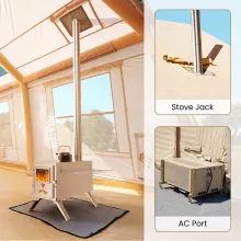 - Stove jack for safe use of camping stoves and added warmth