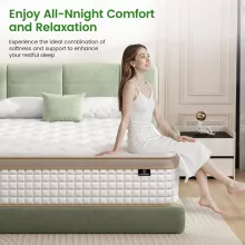 The unique 8-layer hybrid design offers the best of both worlds: the contouring comfort of memory foam and the sturdy support of pocketed coils. Its zonal support system provides tailored comfort for your shoulders, back, and legs, ensuring your spine stays aligned in its natural position. The reinforced edge support keeps the mattress stable and prevents sagging, giving you a full and reliable sleeping surface from edge to edge.