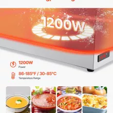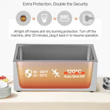 Crafted from premium stainless steel, it’s built to withstand frequent use while offering easy cleaning and lasting shine. The wide U-shaped heating tube distributes heat evenly, while the adjustable temperature control (86–185°F) lets you tailor warmth for soups, sauces, or main courses. Whether it’s a hotel buffet, outdoor party, or a festive celebration, this food warmer makes serving large groups simple and elegant.