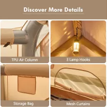 This inflatable tent brings the perfect mix of comfort, safety, and practicality to your outdoor adventures. From family trips and large group camps to luxury glamping escapes, it’s built to perform through every season. Set it up in minutes, stay protected, and enjoy a premium camping experience—wherever you choose to explore.