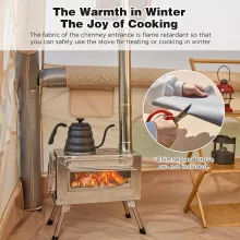 Made with high-quality 600D Oxford fabric and a reflective mylar lining, this four-season tent offers superior insulation and UV protection. With a waterproof rating of over 3000 mm on both the roof and the bottom, you’ll stay dry and cozy through rain, wind, or snow. It’s perfect for summer glamping, fall camping trips, winter hikes, or springtime escapes.