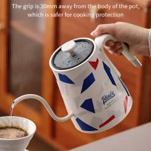 Built from high-quality stainless steel, this kettle combines elegance with durability. The refined gooseneck spout provides unmatched control over the flow rate, allowing you to pour with accuracy and grace. With a generous capacity of over 20 oz (600 ml), it’s ideal for personal use or sharing a warm beverage with friends. Its ergonomic handle stays cool to the touch, ensuring a safe and comfortable grip every time you brew.