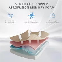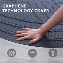 The Copper-Infused Aerofusion Foam works tirelessly through the night to regulate temperature, humidity, and odor, ensuring a cleaner and fresher sleep environment. Combined with a graphene cooling knit fabric cover, this mattress actively dissipates heat and moisture while maintaining a smooth, breathable surface. You’ll stay cool and dry no matter the season.
