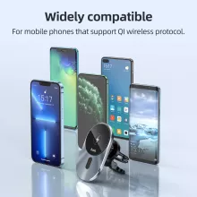 Unlike standard holders, this magnetic wireless charger is tailored for seamless use with iPhone 12 and 13 series. Its magnetic connection ensures perfect alignment for optimal charging, while the stylish design elevates your car’s interior. With support for multiple output levels (5W, 7.5W, 10W, 15W), it adjusts to your phone’s needs while keeping temperatures low and safety high.