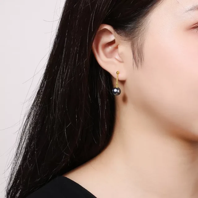 Step into timeless elegance with these stunning 18K gold Tahitian black pearl earrings, crafted to exude luxury and grace with every glance. Featuring perfectly round 9–10 mm black pearls, these earrings are a harmonious blend of nature’s beauty and fine craftsmanship. Set in genuine AU750 yellow gold, each piece radiates understated charm while capturing attention through its luminous deep hue and flawless surface.