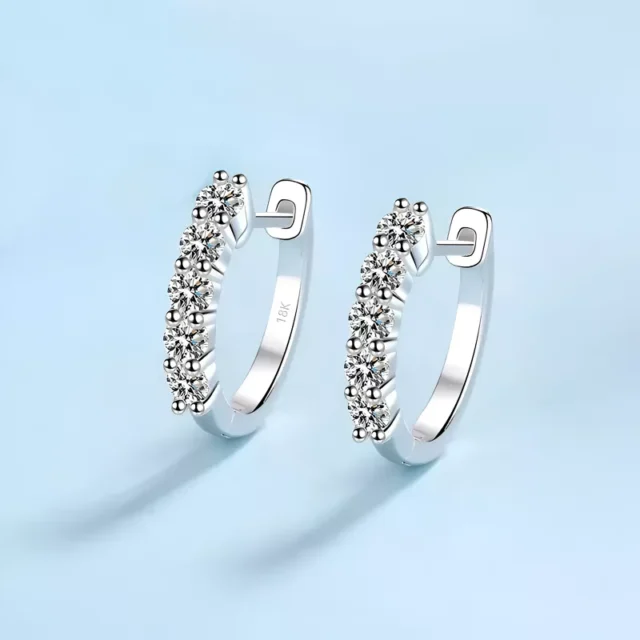 Each earring is made from genuine 18K white gold, delivering a luxurious feel with lightweight comfort. The high-quality moissanite stones are GRA-certified and hand-set to ensure flawless presentation. With a secure hoop design and a sleek finish, these earrings offer everyday wearability with a dash of luxury. The classic silhouette and radiant shine make them a perfect match for bridal events, formal parties, or everyday elegance.
