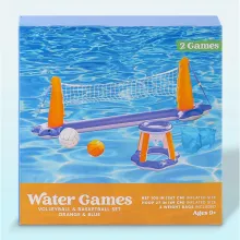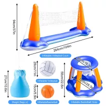 2-in-1 Inflatable Pool Basketball Hoop & Volleyball Net Set