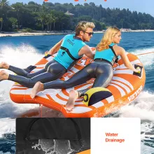 Get ready for heart-pounding action on the water with this 2-person inflatable towable tube for boating. Built for thrill-seekers and water sports lovers, this towable tube offers a perfect blend of excitement, comfort, and safety. Whether you’re hitting the lake, cruising the river, or challenging the open sea, this tube delivers fast, stable, and unforgettable rides for up to two riders. With a max weight capacity of 340 lbs, it’s made for shared adventures and summer memories.