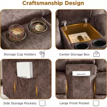 Convenience meets style with a center console that includes dual cup holders, a spacious storage compartment, and handy side pockets. Keep your remotes, magazines, and snacks close by—everything you need for a movie marathon or game night is right at your fingertips. Each seat reclines independently, offering a personalized experience for both users.