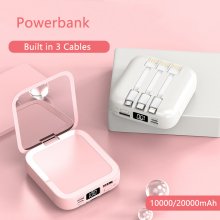 20000mAh Mini Power Bank with Built-in Cable and Makeup Mirror