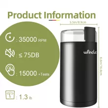 This coffee grinder isn’t just a kitchen gadget—it’s a game-changer for coffee enthusiasts. Powered by a 150W pure copper motor, the machine spins at a high speed of 35,000 RPM, ensuring an even grind that maintains the integrity of your coffee’s flavor profile. The durable stainless steel blades effectively chop and grind beans without burning them, keeping the rich aroma and flavor locked in. With a simple one-touch button, grinding has never been more effortless.