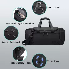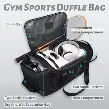 This bag goes beyond the basics. It features a spacious main compartment, a dedicated shoe pocket, and a separate wet-dry section to keep your sweaty clothes or damp gear away from clean items. No more juggling multiple bags – now you can carry everything in one.