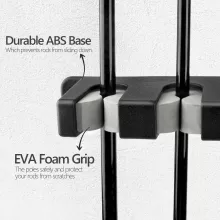 Each rod rack features durable EVA foam inserts that hold your rods firmly without scratching or damaging them. The soft slots cradle the rods, while the modular interlocking design lets you add more racks as your collection grows. Whether mounted vertically or horizontally, this holder creates a tidy, professional look and prevents rods from warping, falling, or being damaged during storage.