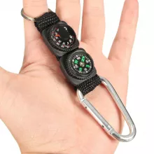 - 3-in-1 Functionality: Combines a sturdy carabiner, a reliable compass, and a clear thermometer