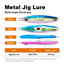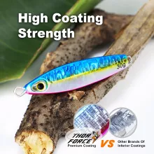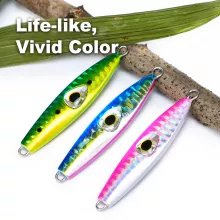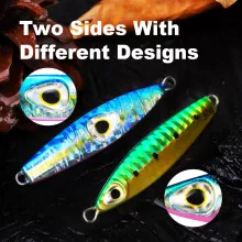 The asymmetric design mimics the erratic movement of a wounded baitfish, with a slow fall pattern that drives fish wild. Enhanced with UV reflection and a luminous finish, it remains highly visible even in deep water or low-light conditions. The hot stamping process and multi-layer paint coating not only give it a brilliant flash but also make it highly resistant to wear and paint peeling—giving you long-lasting performance with every outing.