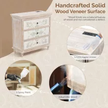 Transform your bedroom with this beautifully crafted 31.5″ wide washed white nightstand, designed to bring charm, convenience, and timeless elegance to your space. Standing at 32.2″ tall, this 3-drawer nightstand features a real fir wood veneer surface that highlights the natural wood grain and unique knots, creating a warm and inviting aesthetic. Each piece is 100% hand-finished by skilled artisans, showcasing a level of craftsmanship that turns ordinary furniture into a work of art.