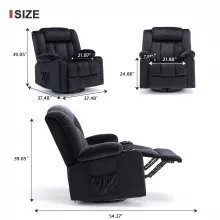 This recliner takes comfort a step further with an upgraded 8-point vibration massage system. Targeting your back, lumbar, thighs, and legs, it promotes blood circulation, relieves tension, and melts away fatigue. Using the included remote control, you can easily adjust between different massage modes and intensities for a customized relaxation experience tailored to your needs.