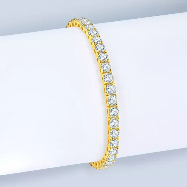 Elevate your style with the timeless beauty of the 3mm Moissanite Tennis Bracelet. Designed for women who love refined elegance with a modern edge, this bracelet brings together high-grade craftsmanship and luxurious materials. The radiant moissanite stones are set in 925 sterling silver and finished with a rich K gold plating—creating a bracelet that looks as brilliant as it feels. Whether you’re dressing up for a party or adding a touch of sparkle to your everyday outfit, this piece is the perfect companion for any occasion.