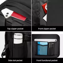 • Organized Interior: Multi-pocket layout to store electronics, clothes, accessories, and travel essentials neatly.