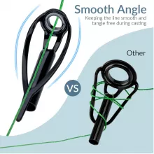 Each rod guide features a stainless steel frame and a smooth, wear-resistant ceramic ring. This thoughtful design minimizes friction and helps protect your fishing line—especially when using braided or fluorocarbon lines. The flared frame helps prevent tangles, making every cast cleaner and more precise.