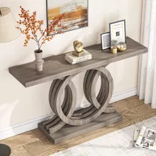Transform your space with this 55-inch Wooden Console Table that perfectly blends farmhouse warmth with modern sophistication. Designed with a stunning geometric base and a smooth, luxurious tabletop, this table is more than just furniture—it’s a statement piece. Whether greeting guests in your entryway, displaying cherished décor behind your sofa, or adding charm to a hallway, this console table enhances your home with timeless beauty and purpose.