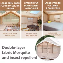 • Comfort & Privacy: Double doors, breathable windows, and separate space zones