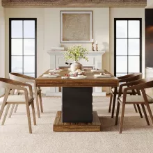 - Modern farmhouse charm with a striking geometric pedestal base