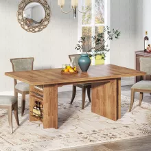 The standout feature is its built-in storage shelves on both sides. Unlike ordinary tables that waste the space underneath, this design gives you two convenient shelves perfect for storing placemats, napkins, cookbooks, or decorative items. The rich rustic brown finish and solid 1.4-inch thick tabletop create that authentic farmhouse feel you love, while the thoughtful storage adds modern convenience to traditional style. It’s this perfect blend of form and function that makes this table truly special.