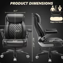 Engineered to support up to 650 lbs, this chair features a heavy-duty metal base, ergonomic contours, and a reinforced frame that redefines durability. The 5D flip-up armrests make it easy to save space or customize your sitting experience—perfect for both home offices and shared workspaces. With breathable faux leather and a generously padded backrest, every moment spent in this chair feels effortlessly luxurious.