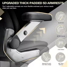 - 5D Flip Armrests: Easily adjust, rotate, or fold the arms out of the way to fit your workspace perfectly.