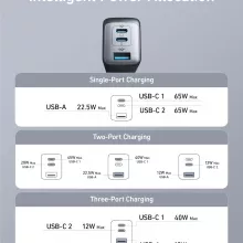 - High-Speed 65W Output: Charge laptops, tablets, and phones simultaneously without slowing down performance.