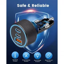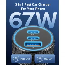 Featuring two USB-C ports and one USB-A port, this car charger allows you to charge up to three devices simultaneously. With a total output of 67W, you can power your smartphone, tablet, or other USB-powered devices without the wait. The advanced fast charging capabilities, including PD and QC technology, deliver a quick and seamless experience every time.