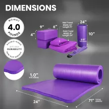 - Complete 7-piece set – Includes yoga mat with strap, 2 yoga blocks, stretch strap, mat towel, hand towel, and knee pad