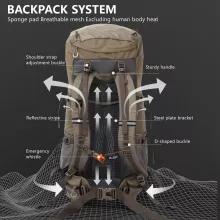 What makes this backpack special is its balance of high capacity and outdoor reliability. Whether you’re exploring mountain peaks or trekking deep into the backcountry, this backpack adapts to your environment with functional design and weather protection. It’s not just a bag—it’s an essential part of your outdoor gear lineup, designed for real adventurers.