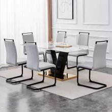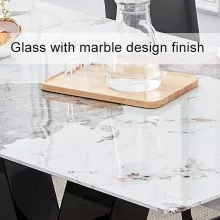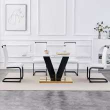 This table is defined by its dramatic and luxurious contrast. The spacious white tabletop, with its elegant marble veining, is beautifully supported by a gleaming golden stainless steel base. This isn’t just a functional piece; it’s a bold statement of modern glamour. The combination creates an instant focal point that elevates your entire dining experience, making every meal feel sophisticated and special.