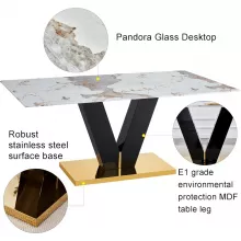 - Strong Golden Base: The supportive V-pillar and base are crafted from sturdy stainless steel with a luxurious gold finish, ensuring the table remains stable and wobble-free.