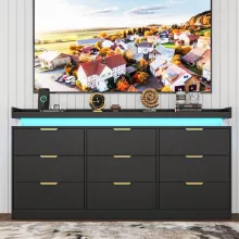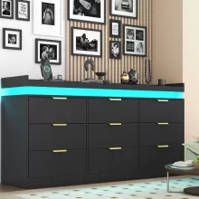 Imagine a dresser that does more than just store your clothes—it becomes the charging hub and ambient lighting center of your bedroom. This modern 9-drawer dresser combines generous storage with smart technology to create a truly functional furniture piece. With its built-in charging station and customizable LED lighting, this isn’t just furniture; it’s an organizational command center that keeps your devices powered and your belongings perfectly organized.