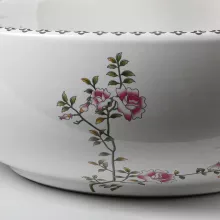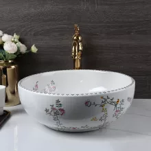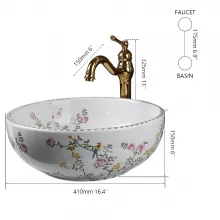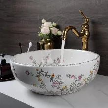 Transform your bathroom into a serene work of art with this stunning hand-painted floral ceramic sink set. The circular basin features intricate flower and bird motifs that bring a touch of nature-inspired charm to your space. Crafted from high-quality ceramic, this elegant washbasin adds sophistication and timeless beauty to any modern or traditional bathroom.