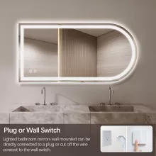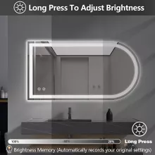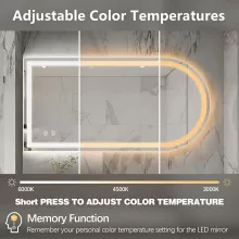 Customize your ambiance with dimmable LED lighting. A simple touch of the round button lets you shift between warm white, natural, and daylight tones to match your mood or lighting needs. With a remarkable 50,000-hour LED lifespan, this mirror will shine bright for years—making it as durable as it is beautiful.