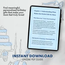 - Chapter 2: Thoughtful Birthday Gift Ideas for Every Type of Mom – Get curated inspiration tailored to her unique personality, whether she’s the Sentimental Mom, the Practical Mom, or the Wellness-Loving Mom. Includes a powerful case study: “The Gift That Made Her Cry (In the Best Way).”