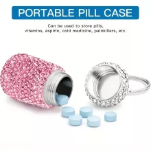🌟 Absolutely love this! The rhinestones give it such a glamorous touch, and the waterproof casing is perfect for my adventures. It's so handy to have my pills with me all the time, right there on my keychain. Plus, I don't worry about them getting wet or damaged anymore.