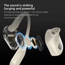 Forget about ear fatigue. With a breathable open-ear design, these headphones let your ears breathe while keeping you aware of your surroundings. Featuring a 14 mm high-sensitivity bionic driver unit and Open Bass DSP control, they deliver a 40% richer and more dynamic sound compared to traditional in-ear models. The sound flows naturally — clear, balanced, and powerful — without ever needing to plug your ears.
