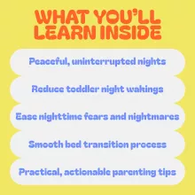 - Comprehensive Approach: Address every aspect of toddler sleep with guides for night waking, fears, nightmares, and transitioning to a big kid bed.