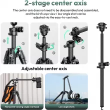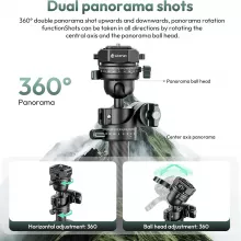 - Dual 360-Degree Rotation System: Features panoramic rotation in both the ball head and center column for complete creative control