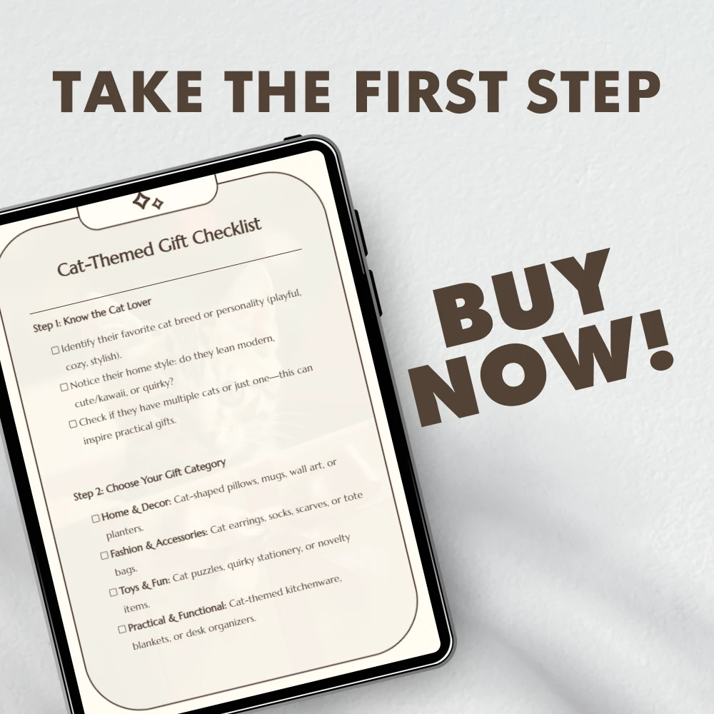 Ready to make your next gift truly unforgettable? Download the Cat-Themed Gift Checklist now and discover how easy it is to find thoughtful, stylish, and joy-sparking cat-themed gifts for every occasion.
