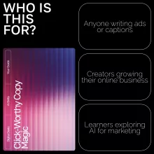Click-Worthy Copy Magic doesn’t just teach theory — it gives you actionable AI-powered tools and frameworks. Unlike generic copywriting books, it’s filled with real examples, customizable prompts, and tested strategies that help you get better results faster.